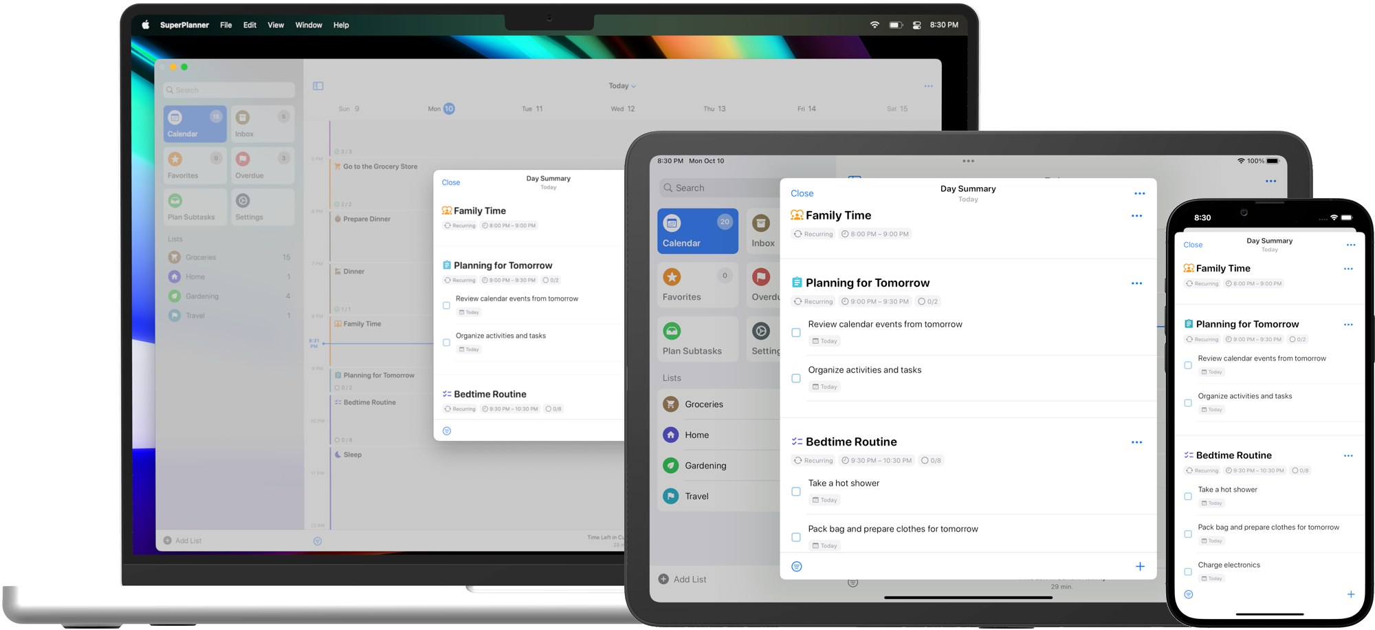 Make the most of every hour by organizing the activities from your day. Connect your calendars and sync your events automatically.
